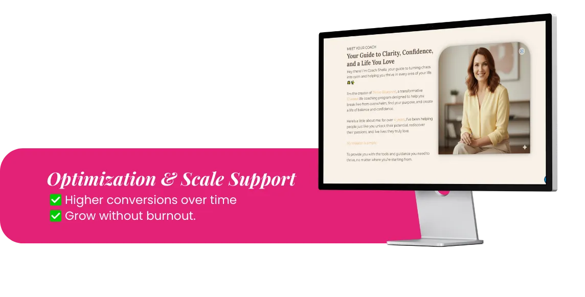 I help female coaches and course creators turn their big vision into a funnel that converts — without the overwhelm.